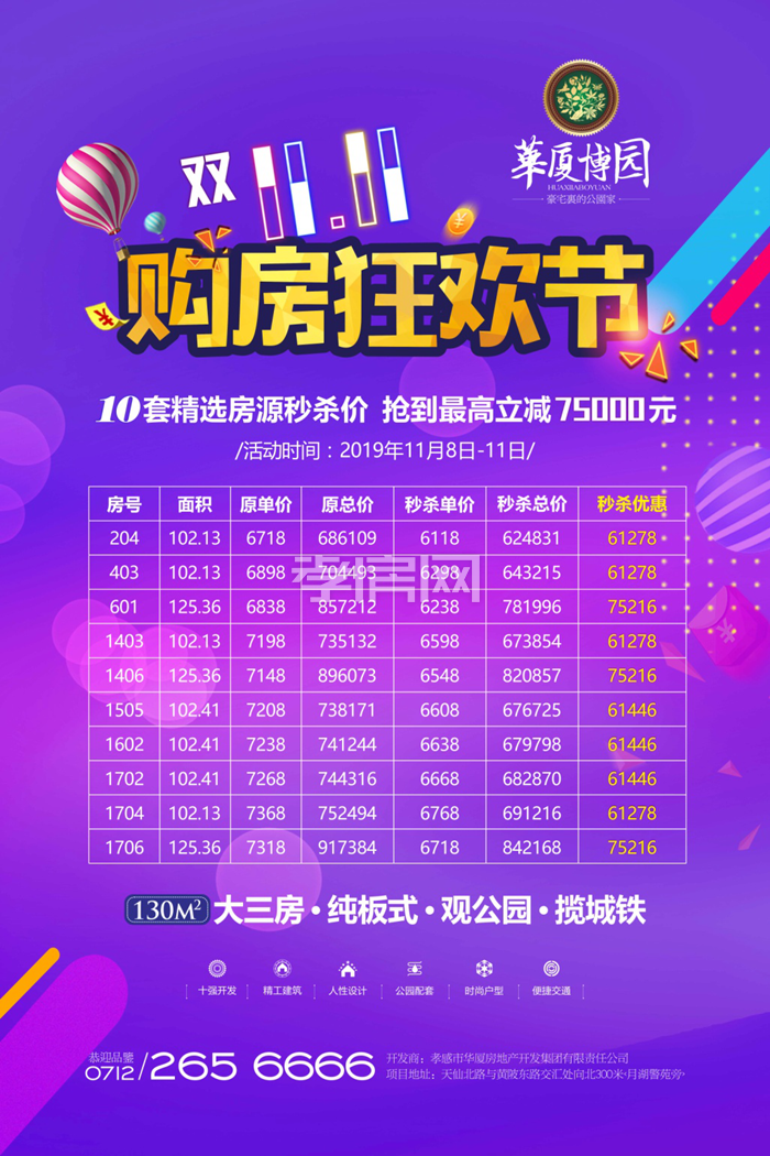 華廈博園11 11狂歡購房節(jié)6118元 m2——華廈博園2期G2棟最后30席清盤鉅惠——<天仙路·城鐵旁·公園邊><雙向涵洞已通車四通八達>【11 11秒殺搶10套特價房,搶6118元 m2秒殺房源】————————————————————————————G2棟204:【11 11秒殺價】62 5萬【單價】6118元 m2【面積】102 13m2【首付】19...[閱讀全文]