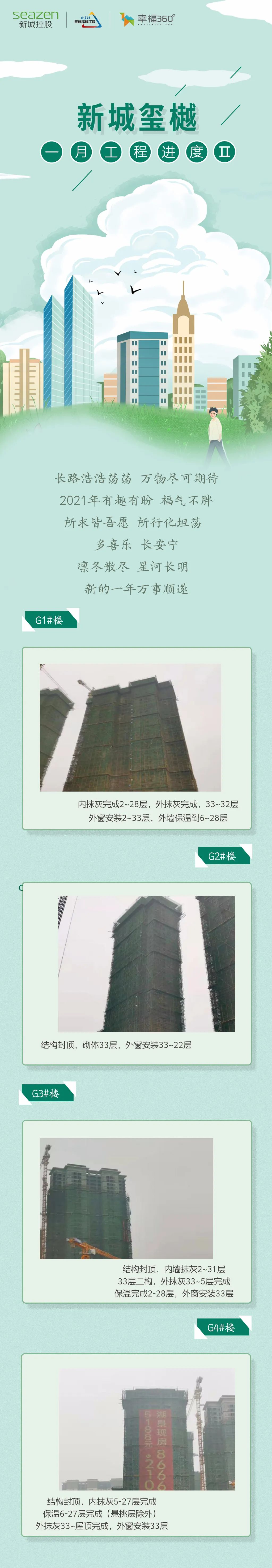 三餐四季一家人,我們亦和您一樣期待,我們將您的憧憬在最美的時光里,醞釀出濃濃家味為您奉上新城璽樾最新工程進度播報。項目名稱:新城璽樾踩盤時間:2021年4月11日項目進度:G1 外窗安裝2-33層,G2 G3 G4 外窗安裝完成,G9西單元21層...[閱讀全文]
