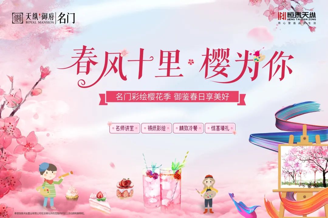 和煦的春風(fēng)拂面帶走了平日積累的煩惱和苦悶一切美好像是注定一般向我們悄然走來用一只畫筆,隨心所想彩繪這屬于櫻花的季節(jié)這個周末,大朋友們帶上小朋友來天縱·御府享受一段斑斕溫情的童趣時光童夢專享藝術(shù)天地每個孩子都是天生的藝術(shù)家在童真的世界里想象是最好的畫筆,繪畫是最好的游戲把色彩斑斕的季節(jié)描摹在錫紙上創(chuàng)造出快樂多彩的童話世界示意圖01現(xiàn)場將盛情邀請楊梅紅藝術(shù)機(jī)構(gòu)教育名師來到天縱·御府和小小藝術(shù)家們共度周...[閱讀全文]