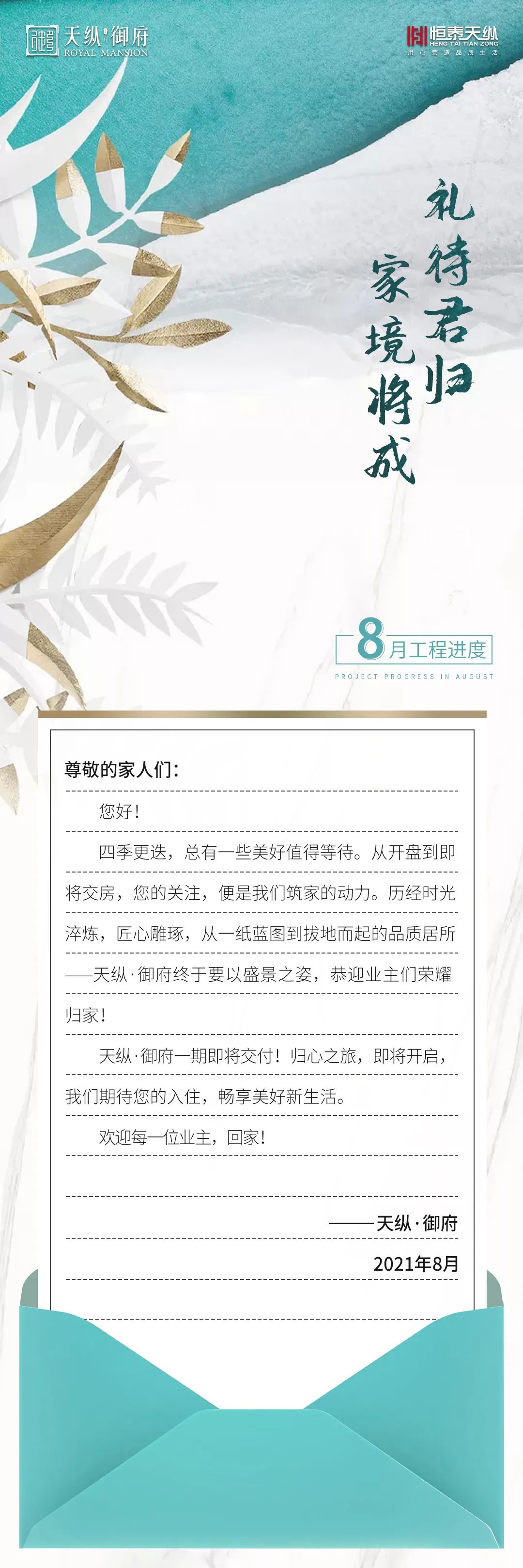 8月仲夏芳菲醉,夏木陽(yáng)陰正可人。盛夏的流韻點(diǎn)綴夏日芬芳,陽(yáng)光璀璨,萬(wàn)物至此皆長(zhǎng)大,您的新家也漸漸成熟香醇。我們深知您對(duì)家的殷切期盼,乘時(shí)光正好,“家”音如約而至。天縱御府始終秉持匠造宜居美好生活初心,用臻心匠藝打造家園,為你營(yíng)造幸福美好的生活逸鏡。項(xiàng)目名稱(chēng):天縱御府踩盤(pán)時(shí)間:2021年8月20日項(xiàng)目動(dòng)態(tài):高層1 2 3 4 5 6 7 建面約108-142㎡...[閱讀全文]