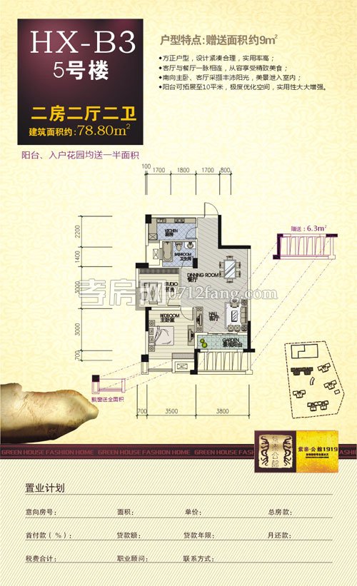 戶型解析 ·主臥貼心配備獨立衛(wèi)生間,充分保證主人隱私; ·方正布局,南北通透,三面采光,時刻與陽光共舞; ·書房外接陽臺,具備可拓展空間,大延伸房間寬度; ·創(chuàng)意入戶花園,相當(dāng)于贈送一間房,百變功能任君選擇。