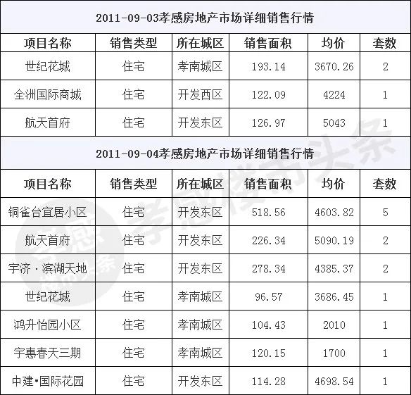 從2011年9月份開始,孝感已經(jīng)有樓盤開始突破5字頭了,小編找到了2011年9月3日-4日的網(wǎng)簽數(shù)據(jù)發(fā)現(xiàn)航天首府已經(jīng)邁入5字大軍。