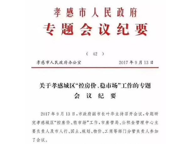 所以2017年9月份市政府召開專題會議,研究孝感城區(qū)“控房價、穩(wěn)市場”工作并形成專題會議紀要。