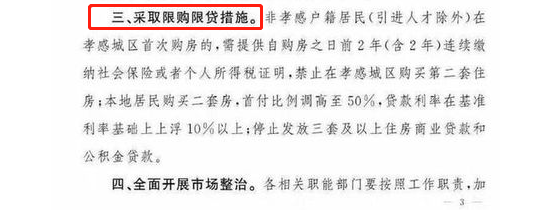 會議還提出了采取限購限貸措施,2017年年底孝感開啟了限購限貸模式。