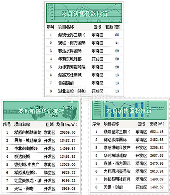 8月份截止目前為止,孝感新房銷售套數(shù)排行榜前8分別為:鼎觀世界三期、寰城·南方國際商城、賽達(dá) ·水岸城、華鴻·公園天下、力標(biāo)·澴河壹號(hào)院 、鼎惠萬佳新城、佳磐瑞府、湖北交投·頤和華府。