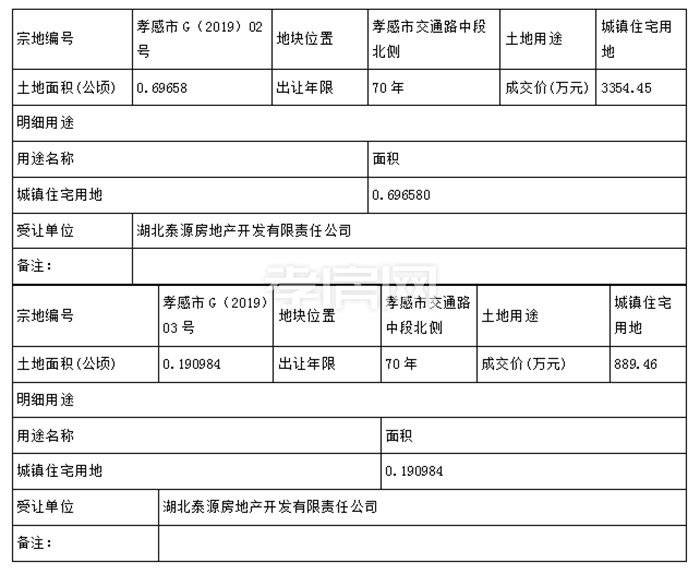 8月有二處土地掛牌,地塊位于孝感市交通路中段北側(cè),出讓年限均為70年用于城鎮(zhèn)住宅用地 ,受讓單位為湖北房源房地產(chǎn)開發(fā)有限責(zé)任公司。