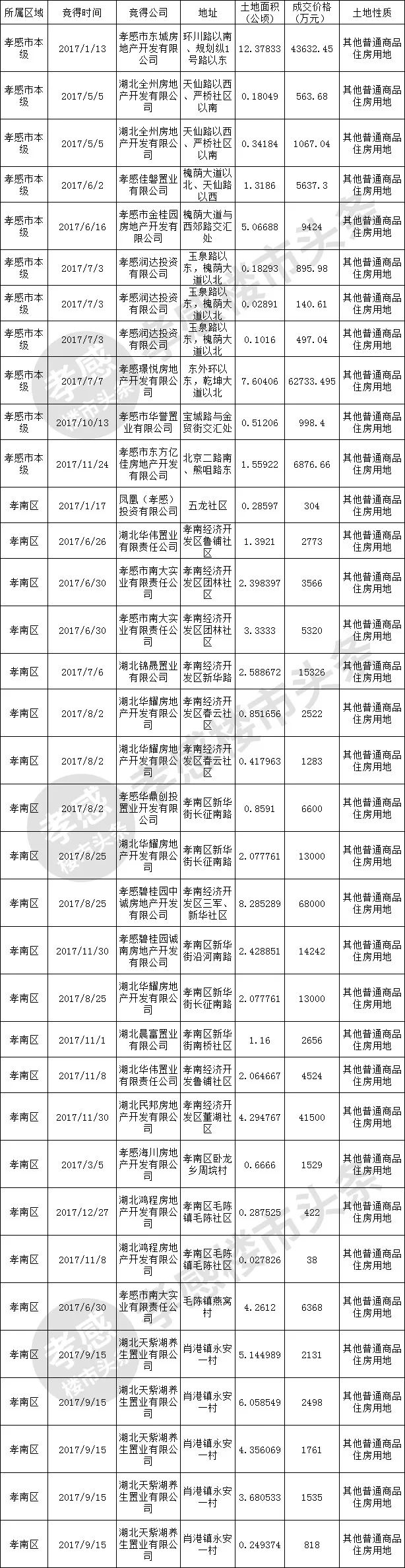 2017-2018年,各大名牌房企入駐孝感積極拿地,土拍價(jià)格不斷刷新