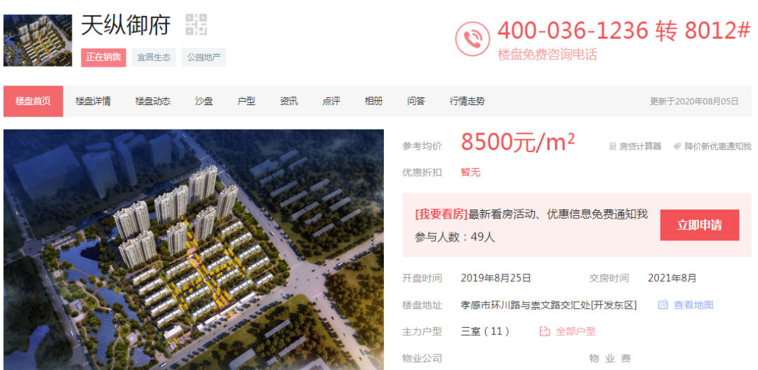 2018年8月恒泰天縱入駐孝感,豪擲9.17億奪得孝感市政好地,土地單價(jià)9300元/㎡,出讓面積9.86116公頃,總價(jià)和樓面價(jià)打破1月份華鴻嘉信地王價(jià),成為新地王,項(xiàng)目名字為天縱御府,現(xiàn)均價(jià)8500元/㎡。