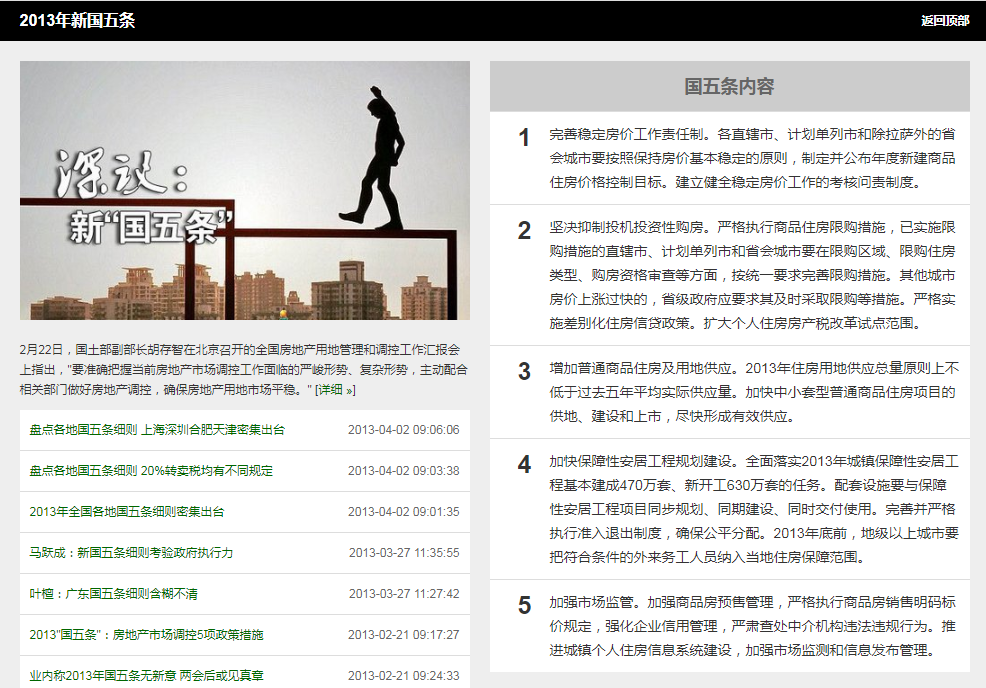 2013年2月20日舉行的國務(wù)院常務(wù)會議出臺了樓市調(diào)控“國五條”。