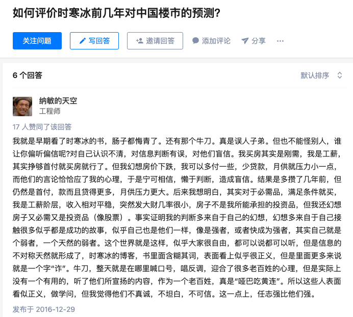 在這兩年,樓市的預(yù)測開始轉(zhuǎn)向,很多曾經(jīng)看空的“專家”開始搖擺,市場情緒出現(xiàn)激化。