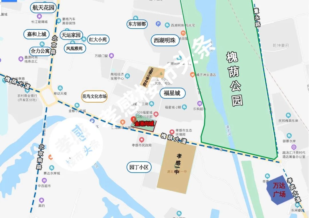 項(xiàng)目位于槐蔭公園東面,斜對(duì)面即為重點(diǎn)高中孝感一中,萬達(dá)廣場則在項(xiàng)目東南方向,距離項(xiàng)目約1.4公里,重點(diǎn)小學(xué)玉泉小學(xué)北京路校區(qū)位于項(xiàng)目南側(cè),距離項(xiàng)目約500米左右。