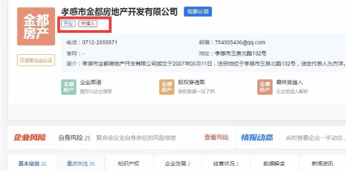 據(jù)天眼查顯示,孝感市金都房地產(chǎn)開發(fā)有限公司目前自身風(fēng)險(xiǎn)條數(shù)是25條、被列為失信房企。
