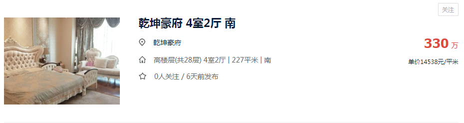 ? ? ? ?目前板塊內(nèi)二手房乾坤豪府,一套房賣到了330萬(wàn)元,在售的新盤新城璽樾、中林?御湖源著(別墅),均價(jià)也都在1.45萬(wàn)/㎡。