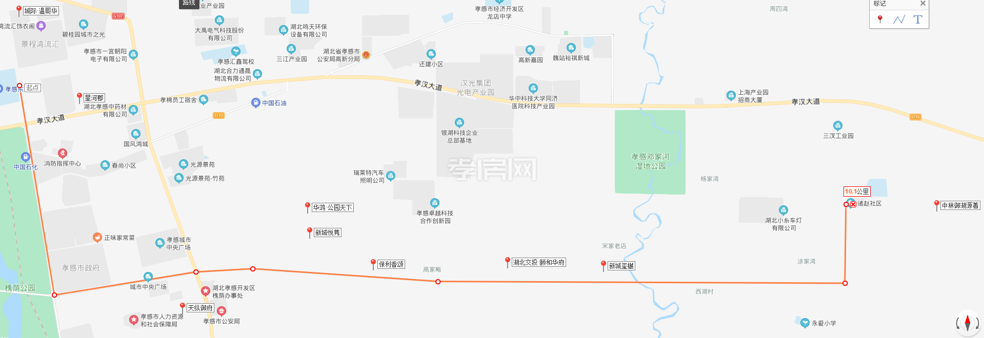 ? ? ? 孝感東站--孝感東站出口--董永路孝漢大道路口--濱湖天地--市民之家--孝感市文化中心--乾坤大道黃香路口--乾坤大道澴川路口--復(fù)興大道澴川路口--復(fù)興大道福源路口--復(fù)興大道懷仁路口--復(fù)興大道尚義路口--復(fù)興大道崇禮路口--復(fù)興大道大智路口--文昌大道守信路口--諸趙社區(qū)。