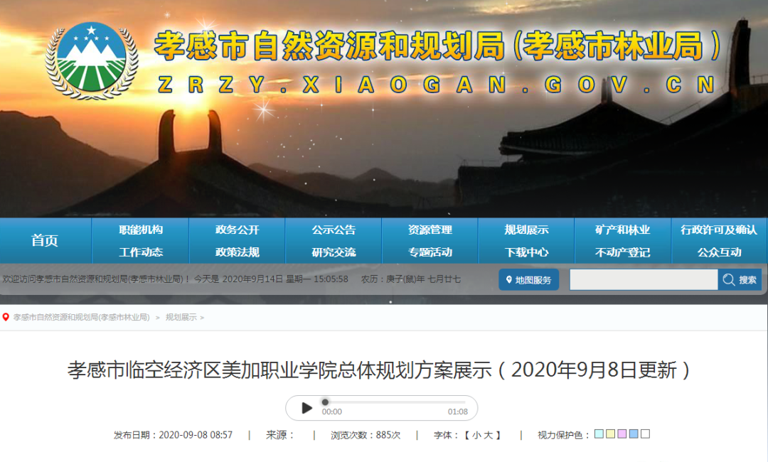 9月8日,孝感市自然資源和規(guī)劃局更新了美加職業(yè)學(xué)院總體規(guī)劃方案