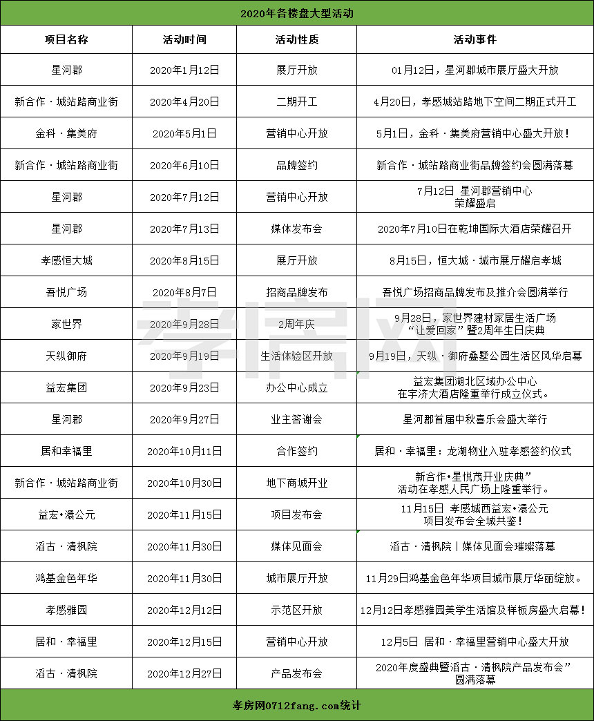 ? ? ? 營(yíng)銷活動(dòng)作為擴(kuò)大項(xiàng)目知名度,助力品牌進(jìn)行營(yíng)銷突圍,是各個(gè)房企必不可少的重要環(huán)節(jié)。孝房網(wǎng)不完全統(tǒng)計(jì),孝感樓市舉辦的大型活動(dòng)中,主要以營(yíng)銷中心開(kāi)放、展廳開(kāi)放、產(chǎn)品發(fā)布會(huì)為主。