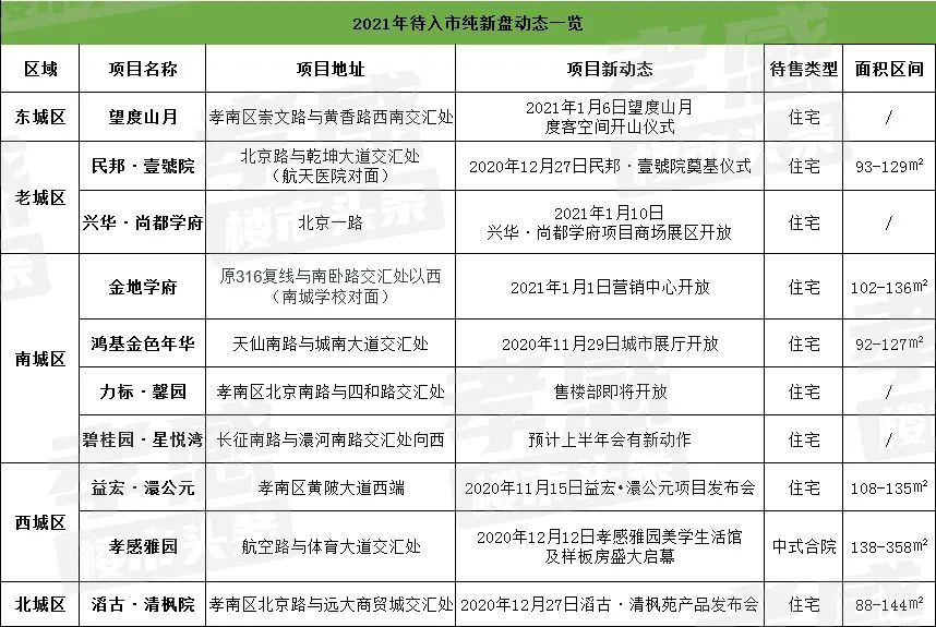 ? ? ? ?據“宅宅”統計,2021年孝感預計還有超10個新盤即將入市。