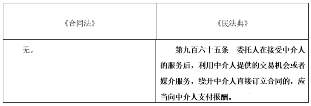 ? ? ? ?《民法典》明確規(guī)定了委托人訂立合同的,必須向中介機(jī)構(gòu)支付中介費(fèi)。該條款禁止了委托人繞開中介機(jī)構(gòu)私自訂立合同,有利于保障和規(guī)范中介行業(yè)的發(fā)展。