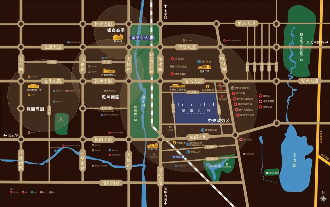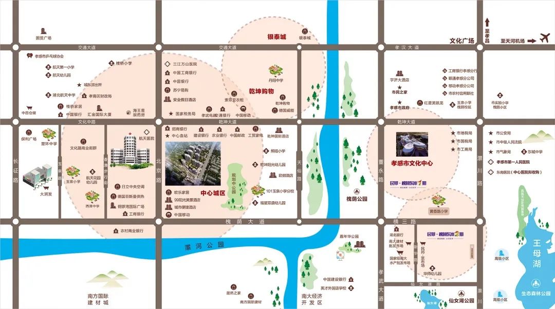 周邊1公里內(nèi)還有孝感第一人民醫(yī)院、市民之家、文化中心、槐蔭公園等,全是王炸配套,居于此,未來生活便利性可見一斑。
