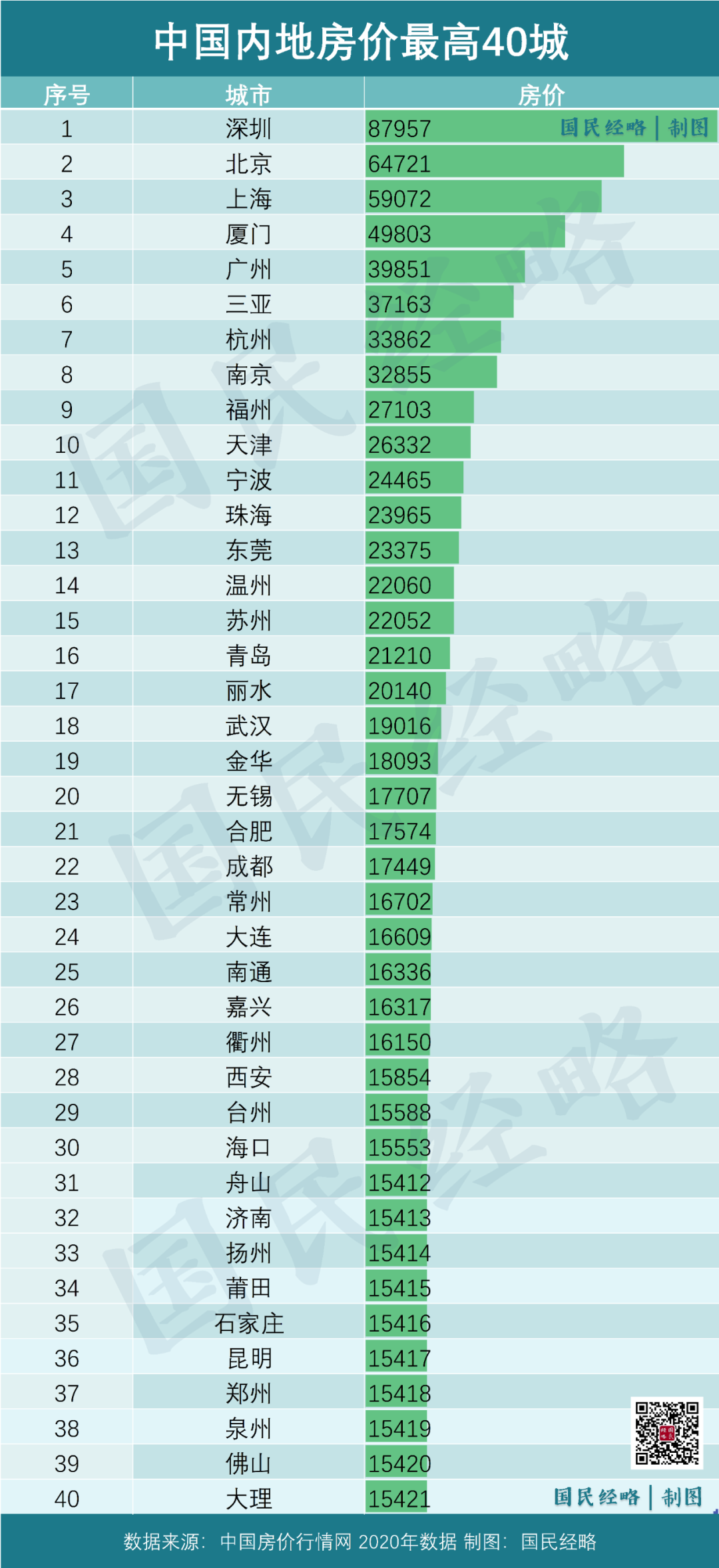 據國民經略整理的中國房價行情網數(shù)據顯示,截至2020年,全國至少有75個城市房價均價破萬。