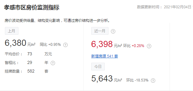 在中國房價行情網上的全國城市房價(住宅)排行榜上,截至2021年1月,孝感房價均價為6062元/㎡,在統(tǒng)計的300多個城市中排第198位。