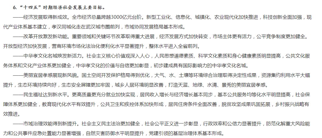 在最新啟程的「十四五」規(guī)劃中,孝感全面建成小康社會取得決定性成就,并定下了未來5年的小目標: