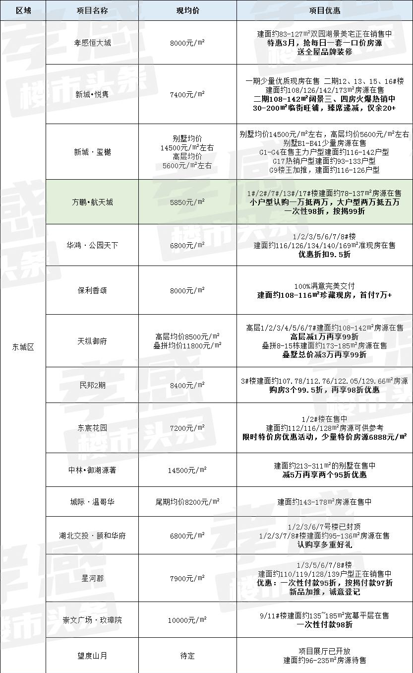 一、東城區(qū)均價:5850元/㎡起!最低首付14.6萬