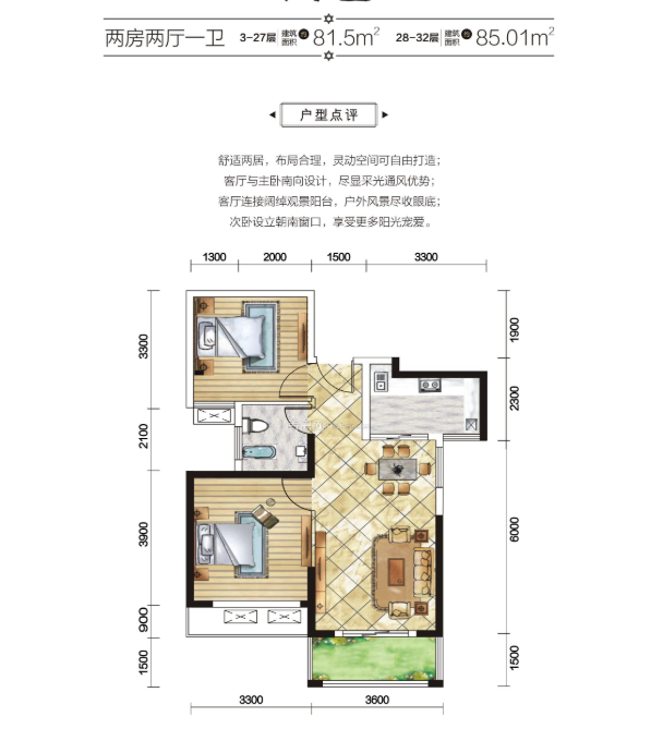 戶型上做得1室兩廳,后期可根據(jù)自身需求,改成小兩房,適合資金不充足的小兩口。