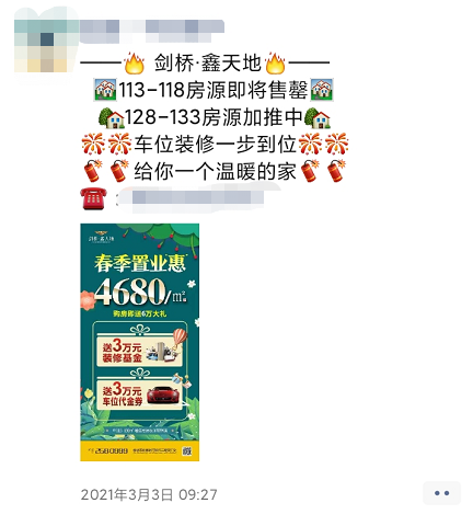 ? ? ? ?2021年3月3日鼎觀世界三期2-8號樓房源價格上浮1%。