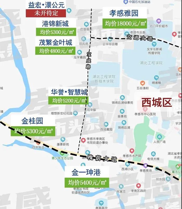 例如去年年底開售的崇文廣場·玖璋院項目,均價破萬,成為孝感當仁不讓的價值高地;今年年初首開的南城區(qū)金地學府項目,均價僅5050元/㎡。