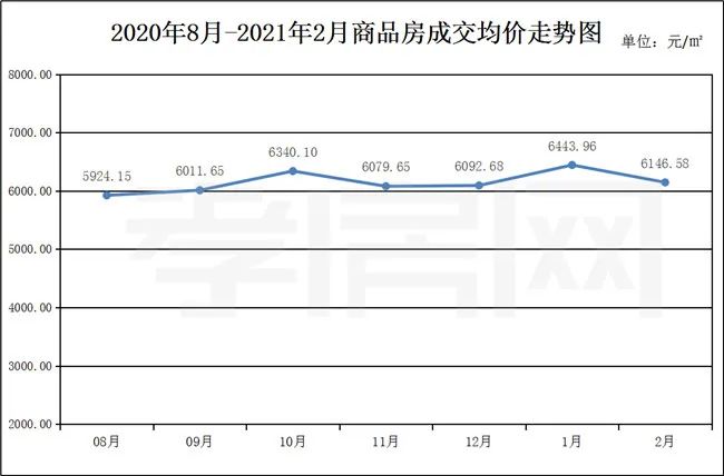 2020年8-2021年2月商品房成交均價(jià)走勢(shì)圖