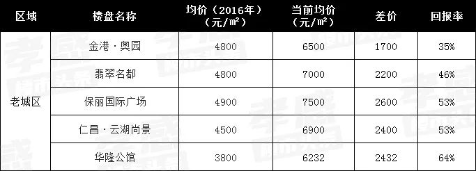 ? ? ? ?從回報(bào)率來(lái)看,老城區(qū)回報(bào)率較高的樓盤(pán)為華隆公館,回報(bào)率為64%。