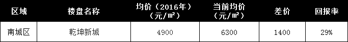 ? ? ? ?南城區(qū)是一個(gè)新區(qū),2016年在售的項(xiàng)目比較少,僅統(tǒng)計(jì)一個(gè)在售熱盤(pán)——乾坤新城。