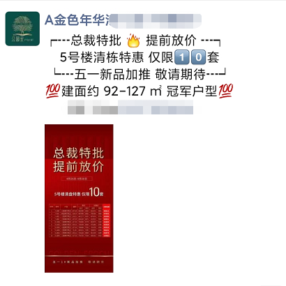 ? ? ? ?這兩天還有網(wǎng)友問我,南城區(qū)的鴻基金色年華的情況,項目均價6000元/㎡的價格都比較親民,今天我就在朋友圈看到了項目加推的消息,5#樓正在清棟,將要加推的1#。
