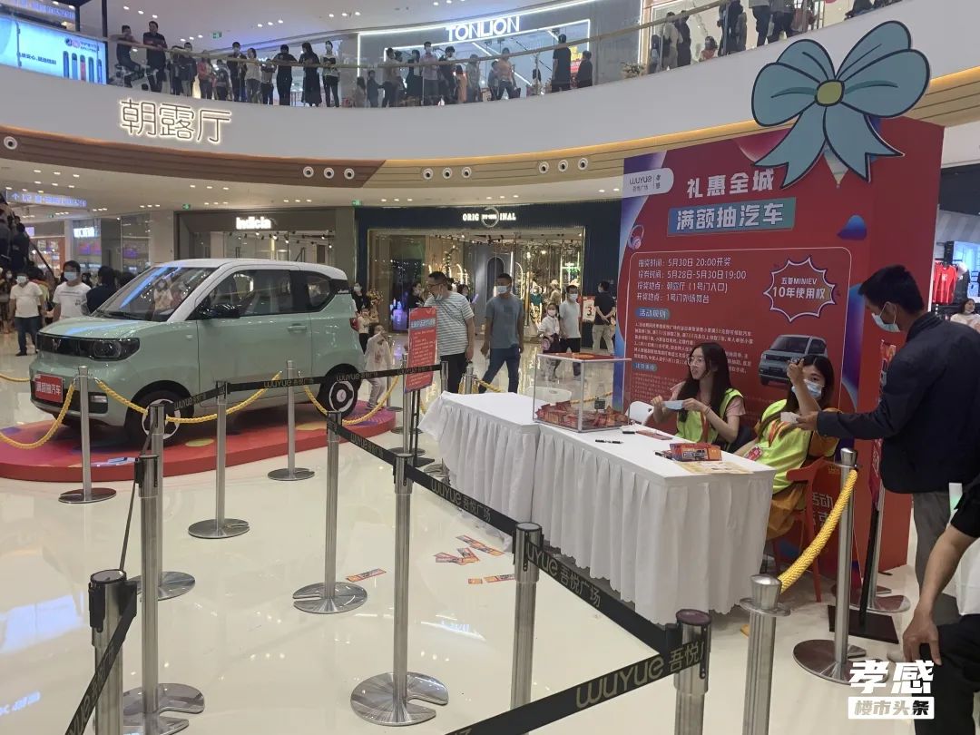 除了各商戶本身的折扣,吾悅廣場(chǎng)還準(zhǔn)備了大禮,會(huì)員消費(fèi)滿88元,即可參與整點(diǎn)抽獎(jiǎng)活動(dòng),單筆消費(fèi)滿188元,還能抽大獎(jiǎng),最高獎(jiǎng)品為宏光MINIEV(十年使用權(quán))。