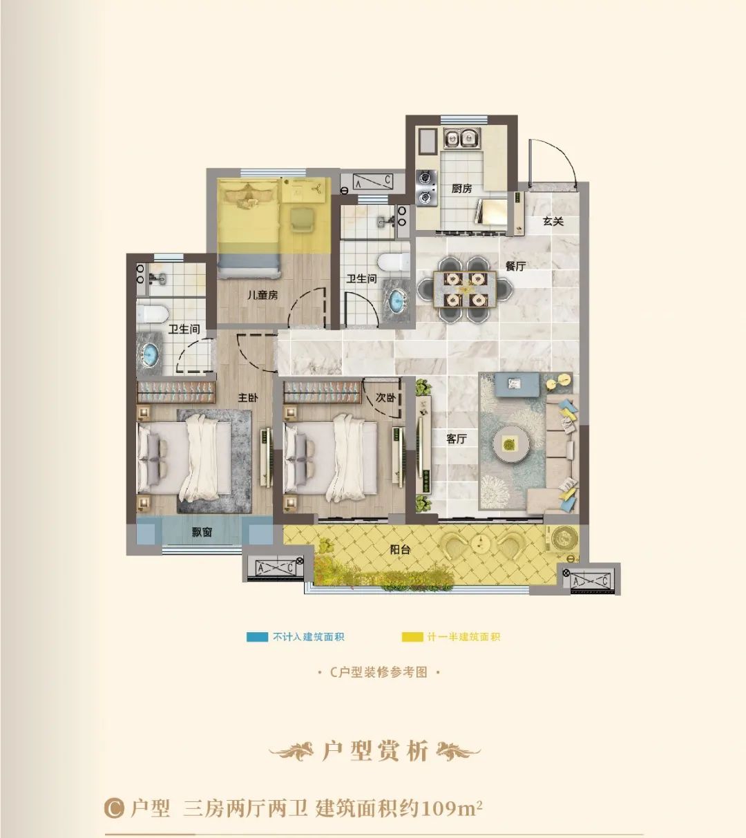 ? ?建面約111㎡三室兩廳兩衛(wèi):動(dòng)靜分離,餐客一體,連接南向觀景陽(yáng)臺(tái),3開(kāi)間朝南,臥室挨衛(wèi)生間,生活起居非常便利。