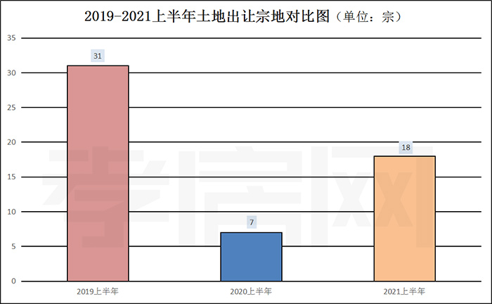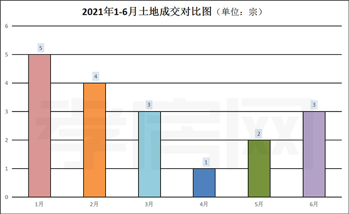 ? ? ? ?從成交總數(shù)來看,2021年同比2020年(7套)上漲157.14%,2020年上半年因為疫情的原因土地市場整體下滑,2021年上半年又重新回溫。