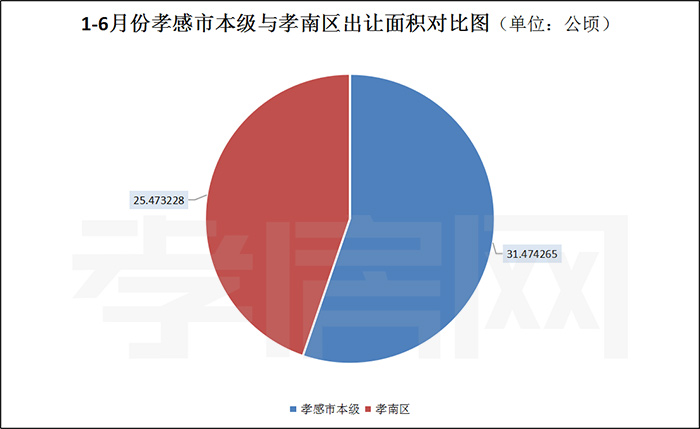 1-6月份孝感市本級與孝南區(qū)出讓面積對比圖