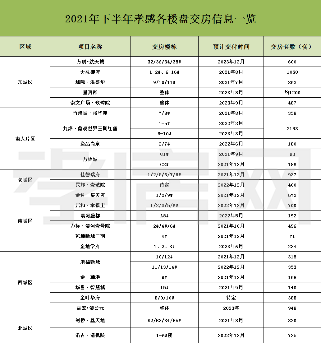 ? ? ? 今天,我整理了孝感近兩年預計要交付的樓盤信息,發(fā)現(xiàn)超過20個樓盤將交付,都是毛坯房,具體信息如下↓↓↓。