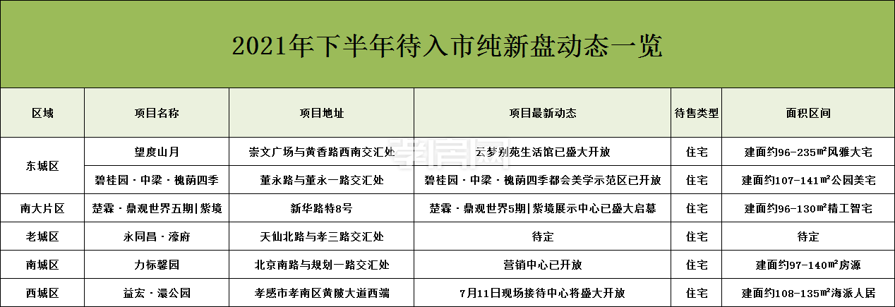? ? ? 除此之外,孝感還有幾個純新盤項(xiàng)目正在前期籌備階段,有的營銷中心或展廳已經(jīng)開放,有的已經(jīng)對外釋放了項(xiàng)目信息,但是也不排除會在2020年亮相的可能。下面小編就統(tǒng)計了這幾個純新盤的具體情況。