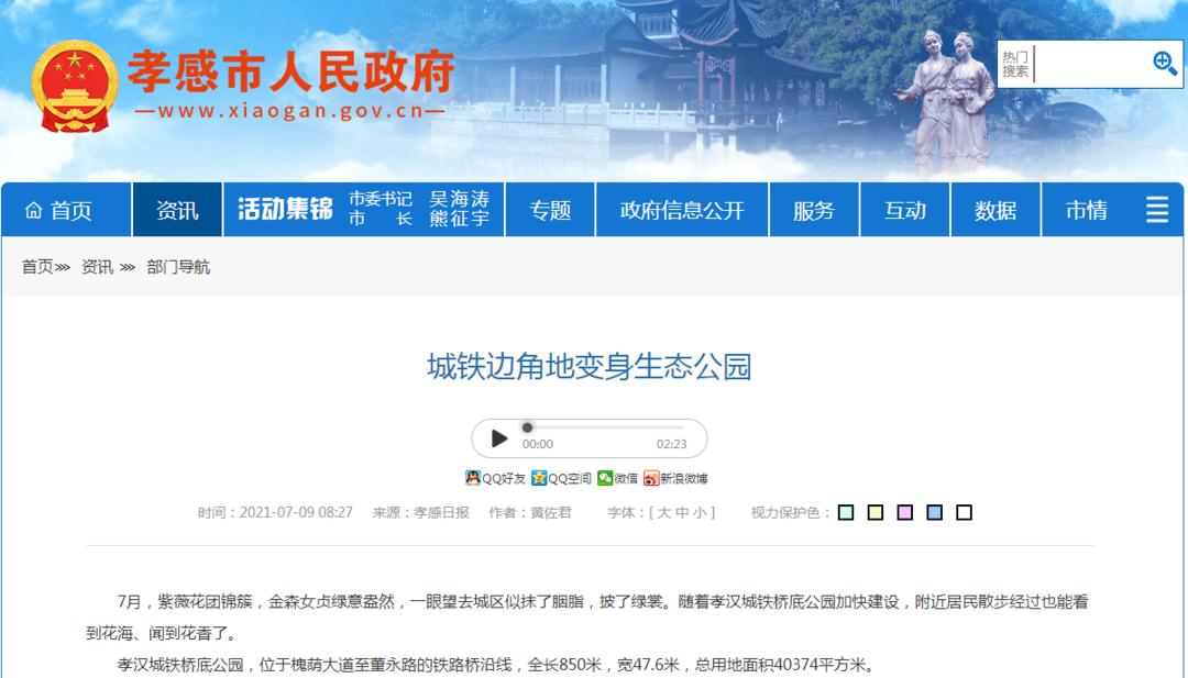 ? ? ?近期,孝感市人民政府網(wǎng)發(fā)布一則消息:城鐵邊角地變身生態(tài)公園--孝漢城鐵橋底公園,位于槐蔭大道至董永路的鐵路橋沿線,同時也意味著東城板塊利好再升級。