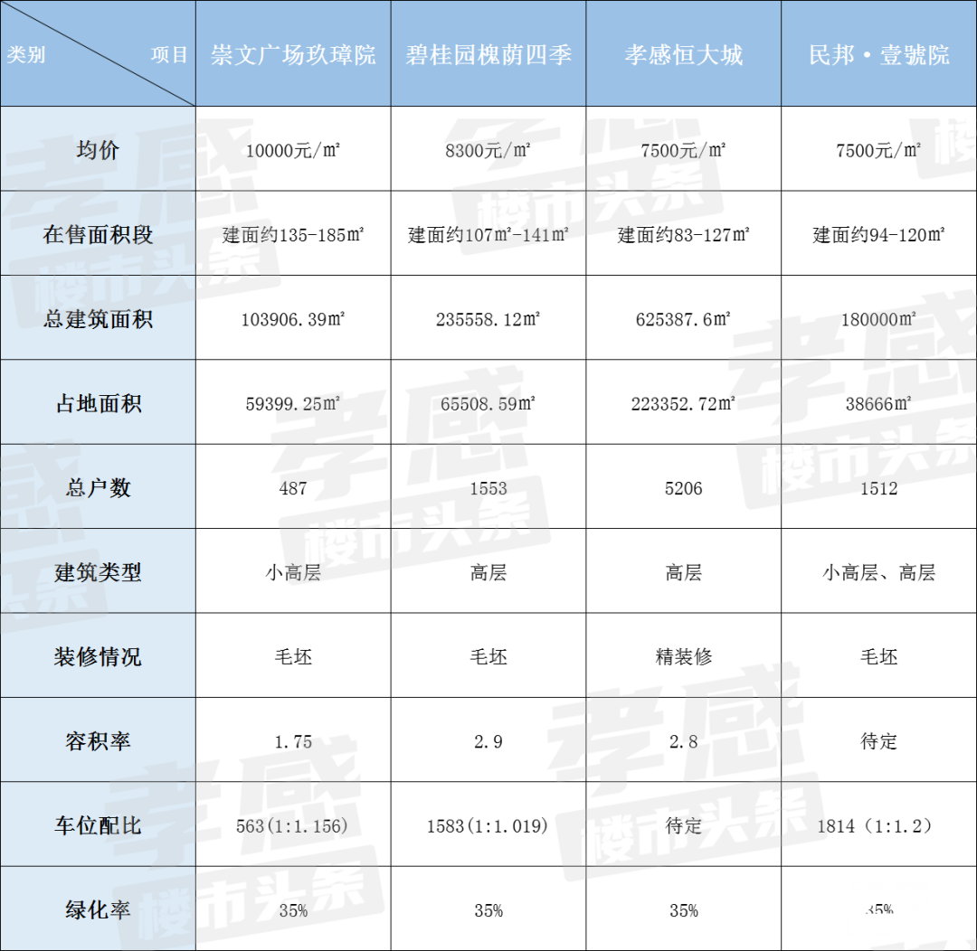 ? ? 大方向配套不出錯(cuò),產(chǎn)品力進(jìn)而成為買(mǎi)房人決斷的關(guān)鍵因素。我將4個(gè)項(xiàng)目的具體數(shù)據(jù)做了表格,方便大家對(duì)比其中細(xì)節(jié)。