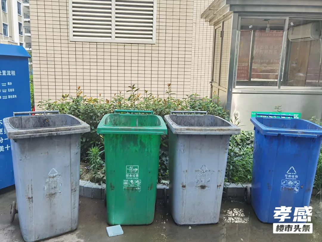 ? ? ? ?我們沿著柏油路往里走,四個分類垃圾桶隨意擺在路邊,有及時傾倒垃圾,不過地面積水沒有處理。