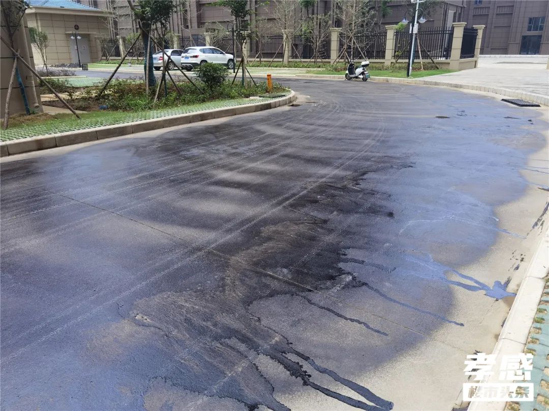 ? ? ? ?我們踩盤當(dāng)天,該小區(qū)正在進(jìn)行道路刷黑工程,路面還沒有完全干。