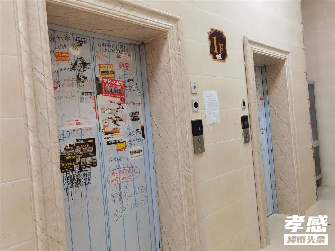 ? ? ? ?電梯間墻面有小廣告,有清理的痕跡,但是并沒有處理干凈。