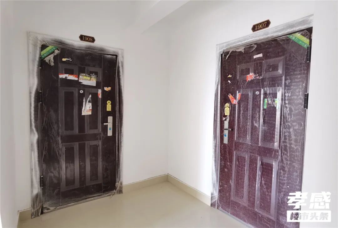 ? ? ? ?單元樓是2梯4戶的設(shè)計,門上的塑料薄膜還沒去掉,小編推測業(yè)主可能還未裝修入住。