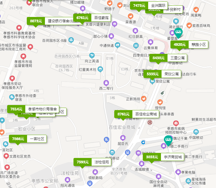 百家宏業(yè)商城小區(qū),于2012年建造,現(xiàn)二手房掛牌價8761元/㎡;法檢佳苑小區(qū),于2000年建造,目前二手房掛牌價7593元/㎡。