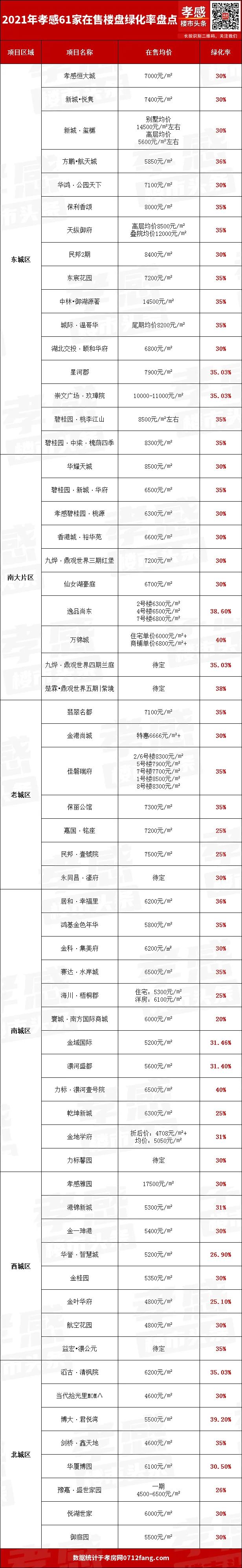 ? ? ? ?那么孝感目前在售樓盤綠化率都是多大呢?小編盤點了孝感6大區(qū)域共61家在售樓盤綠化率,一起來看看吧!