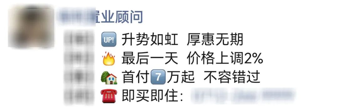 ? ? ? ?另一邊,置業(yè)顧問更是開門見山:漲價倒計時……還有**天,優(yōu)惠取消!價格上漲百分之xx!