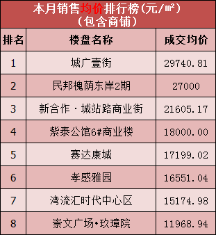 ? ? ? ?2021年8月銷售均價(jià)排行榜,看看位于前三的商鋪